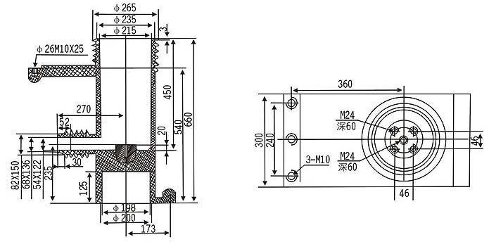 觸頭盒采用環氧樹脂結構,用于各種手車式開關柜,起絕緣隔離和聯接過渡作用。 安裝中心距離為250mm,適用額定電壓10KV,電流2500A~3150A。觸頭盒在額定電流下,長期工作下出線端部溫升不超過65℃。