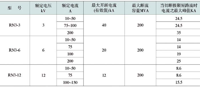 負(fù)荷開關(guān)所配帶的熔斷器型號及參數(shù)