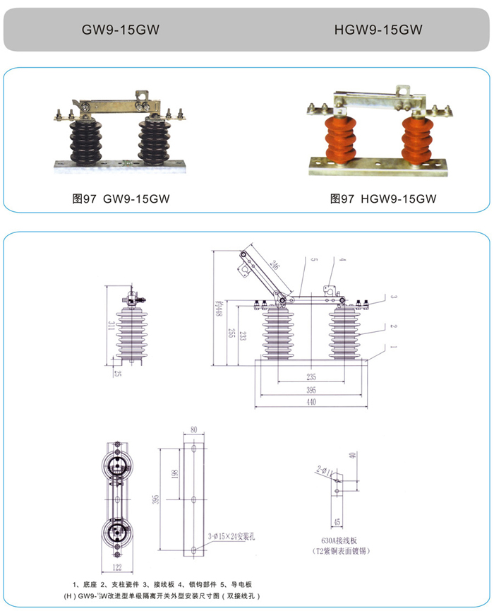 GW9-15/200-6.3、GW9-15/400-12.5、GW9-15/630-20、GW9-15/1000-20、GW9-15/1250-31.5