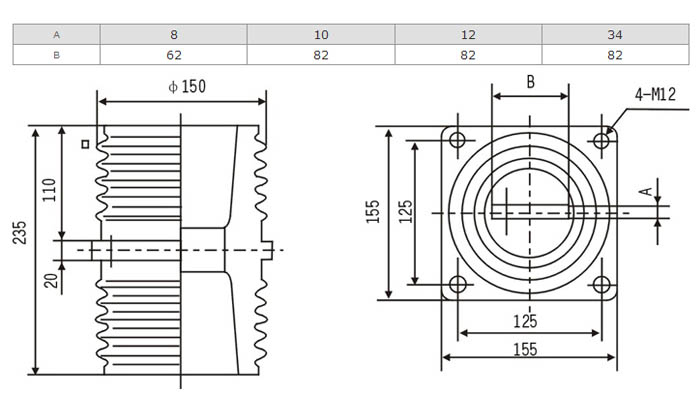 TG1-10Q套管為環氧樹脂APG工藝壓力凝膠成型結構,外形結構尺寸大小為128(100×100)mm、高225mm。主要適用于額定電壓為10KV及以下的成套設備中,作絕緣隔離和聯接過度之用。套管耐污及潮濕,無需特別維護,只需定期地清理表面污質。安裝時母排從孔內穿過。