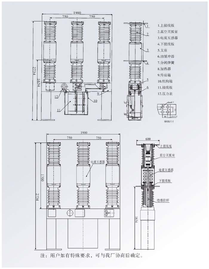 1、采用真空滅弧室,用SF6氣體作為輔助絕緣介質,配彈簧操動機構,實現了全無油化;